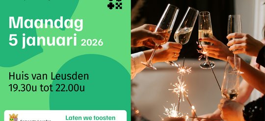 De gemeente Leusden luidt het nieuwe jaar in met de jaarlijkse nieuwjaarsreceptie op maandag 5 januari 2026. Vanaf 19.30 uur bent u welkom het glas te heffen op het nieuwe jaar.