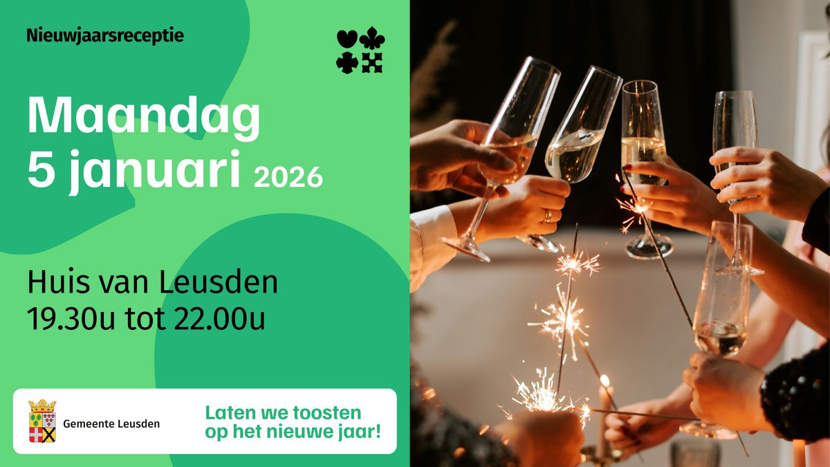 De gemeente Leusden luidt het nieuwe jaar in met de jaarlijkse nieuwjaarsreceptie op maandag 5 januari 2026. Vanaf 19.30 uur bent u welkom het glas te heffen op het nieuwe jaar.