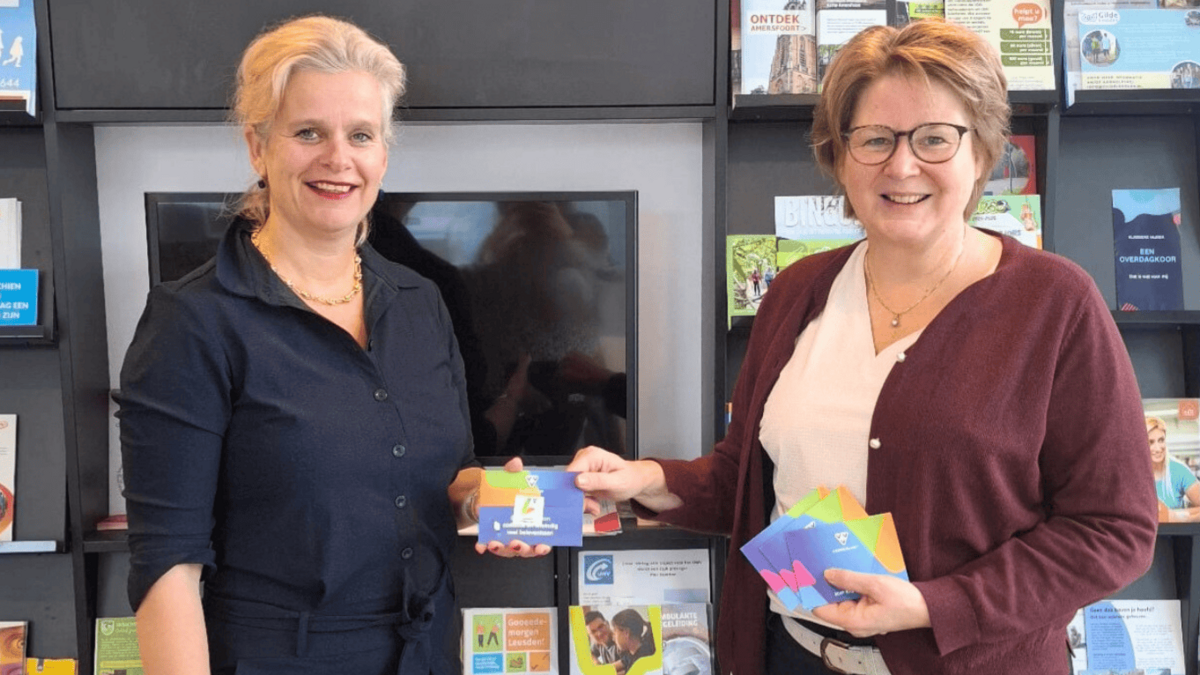 Alle pleeggezinnen en gezinshuizen die aangesloten zijn bij De Gezinsparaplu krijgen een cadeaubon. Lisa Finnema, gezinsparaplucoördinator voor Leusden, Stoutenburg en Achterveld, neemt de cadeaubonnen in ontvangst en bezorgt ze bij al deze gezinnen.