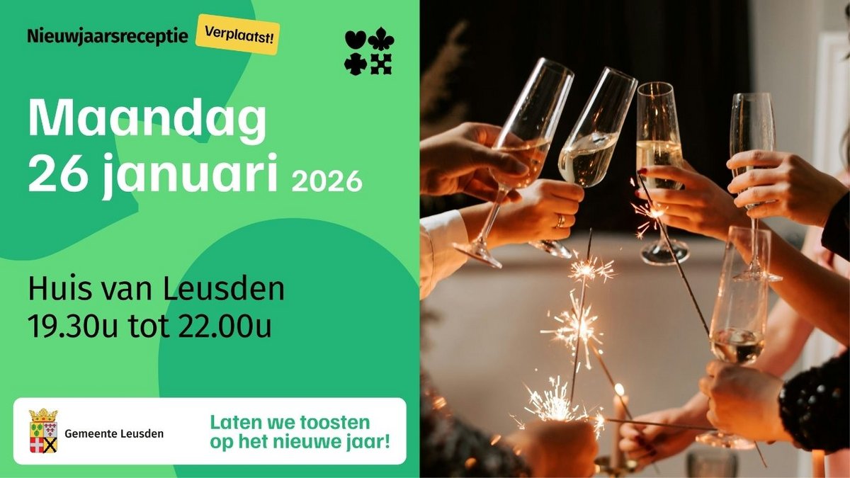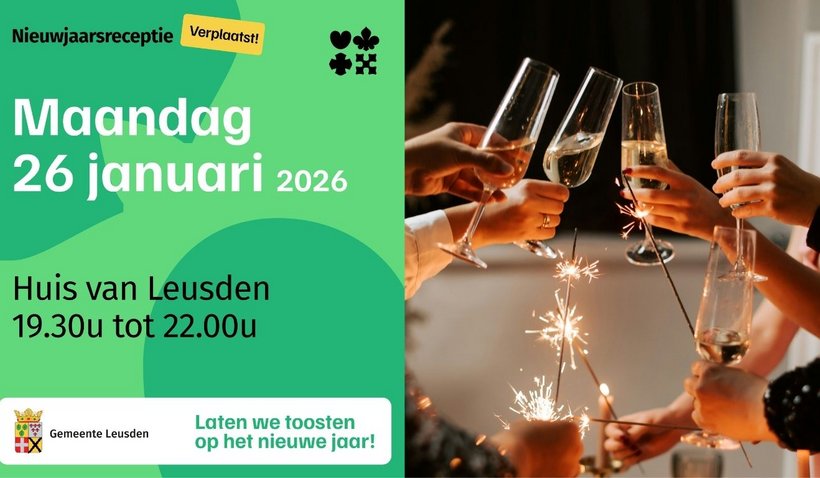 De gemeente Leusden verwelkomt inwoners graag op maandag 26 januari voor de nieuwjaarsreceptie. De bijeenkomst vindt plaats van 19.30 uur tot 22.00 uur in het Huis van Leusden.