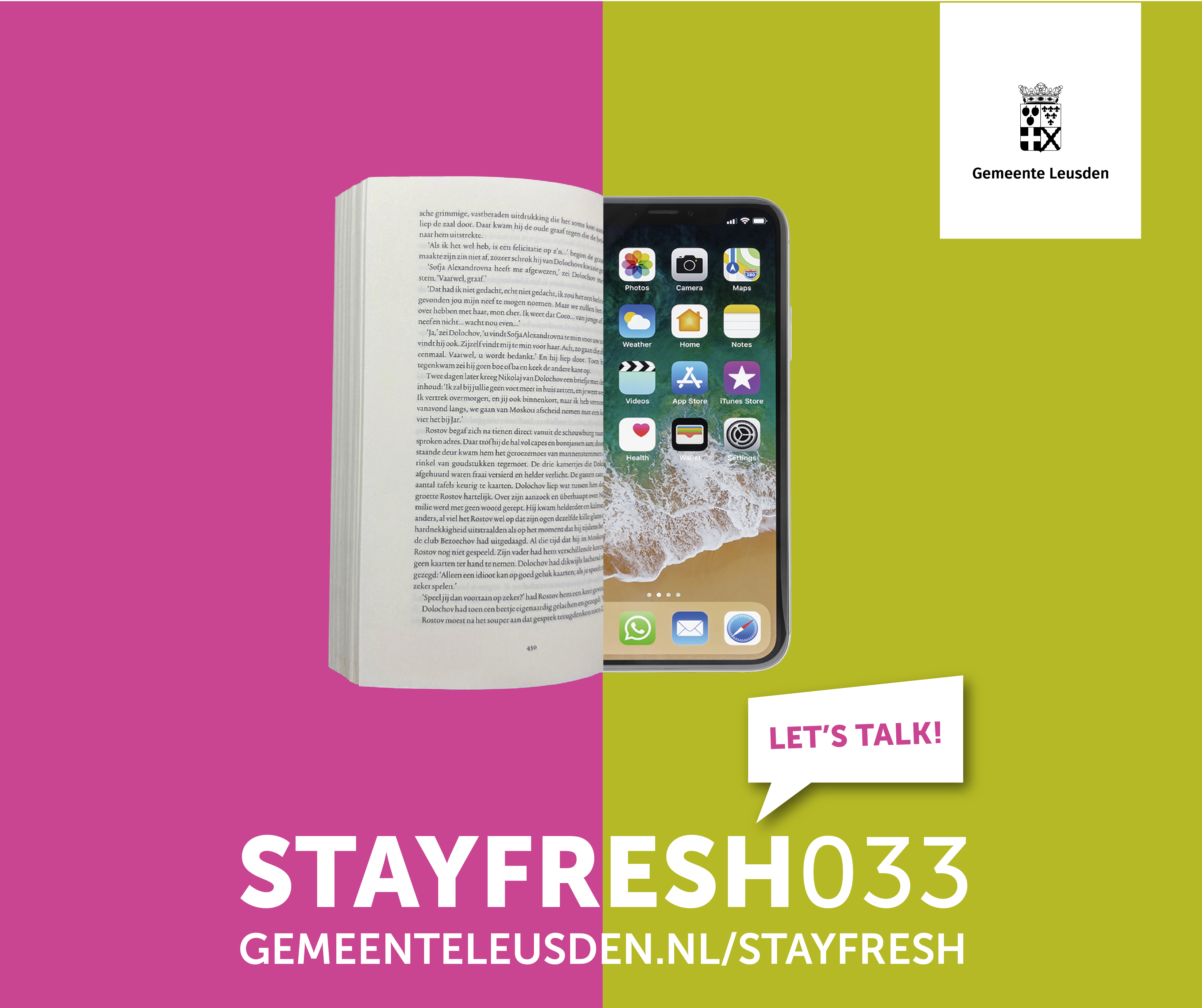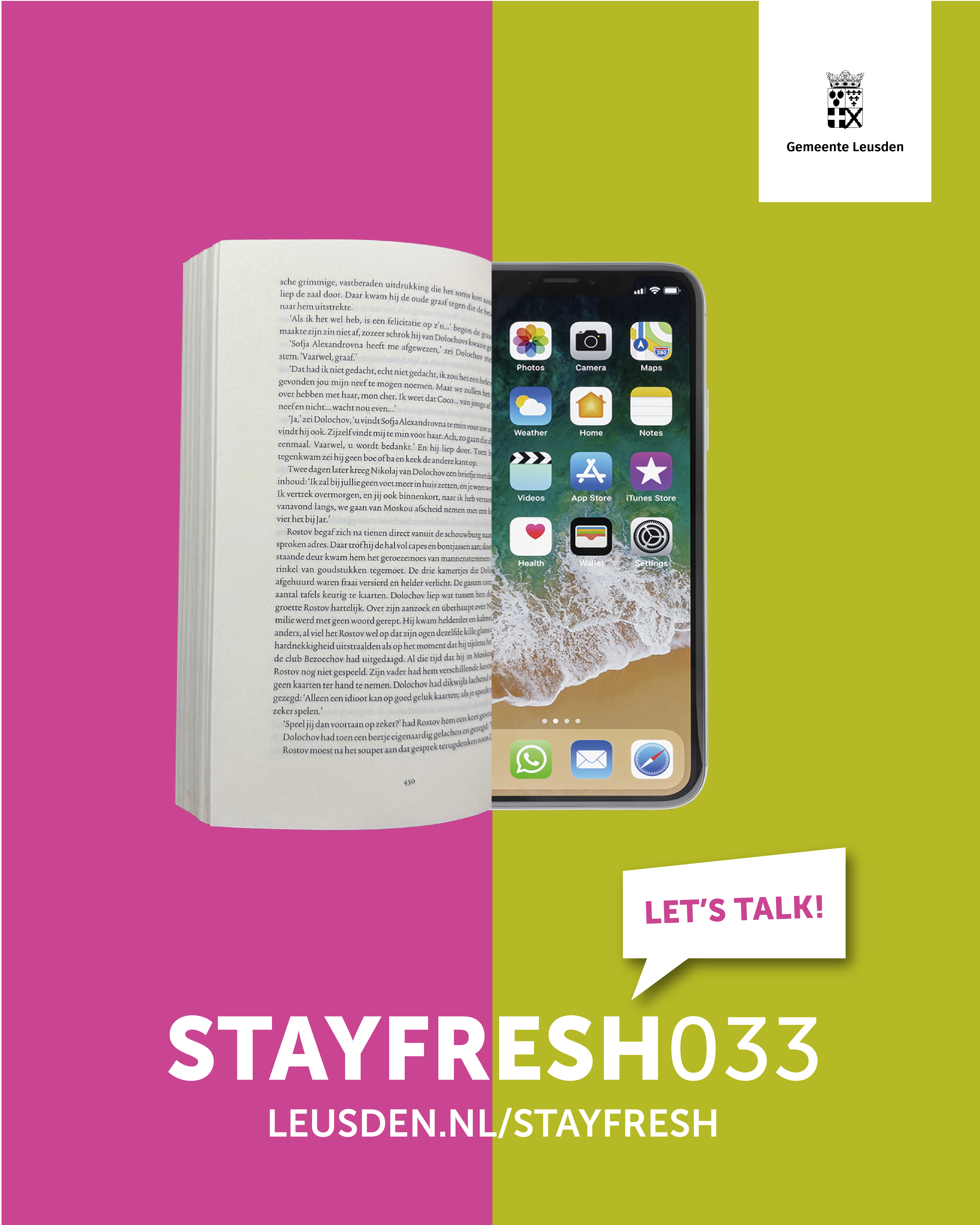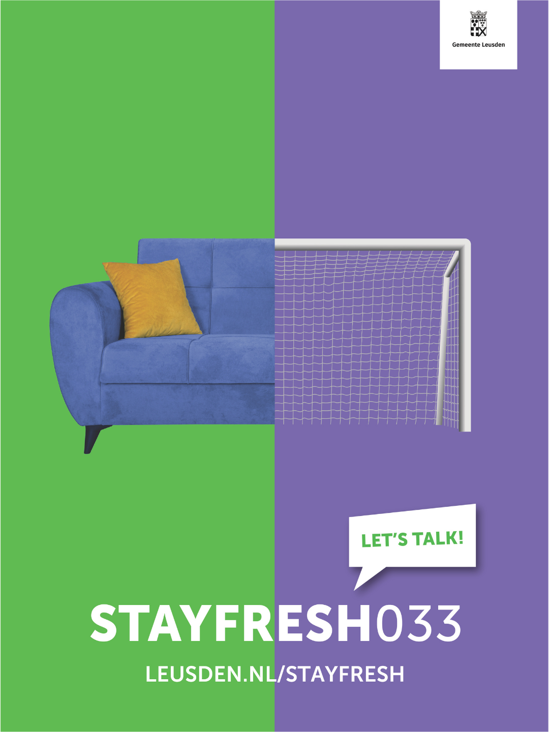 Met de campagne STAYFRESH033 willen we jongeren en opvoeders in Leusden, Achterveld en Stoutenburg helpen om fysieke én mentale gezondheid bespreekbaar te maken. Bent u werkzaam in onze regio? Dan kunt u meehelpen met het verspreiden van deze campagne. Lees hoe.
