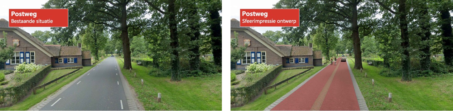 Ook gemeente Barneveld heeft herinrichtingsplannen voor een deel van de Postweg. Het gaat hier om het stuk ter hoogte van de Ringlaan. Meer informatie over dit project vindt u op barneveld.nl/postweg.